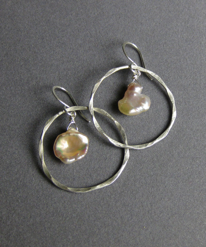 These simple hoops feature a natural-color cultured freshwater pearl.